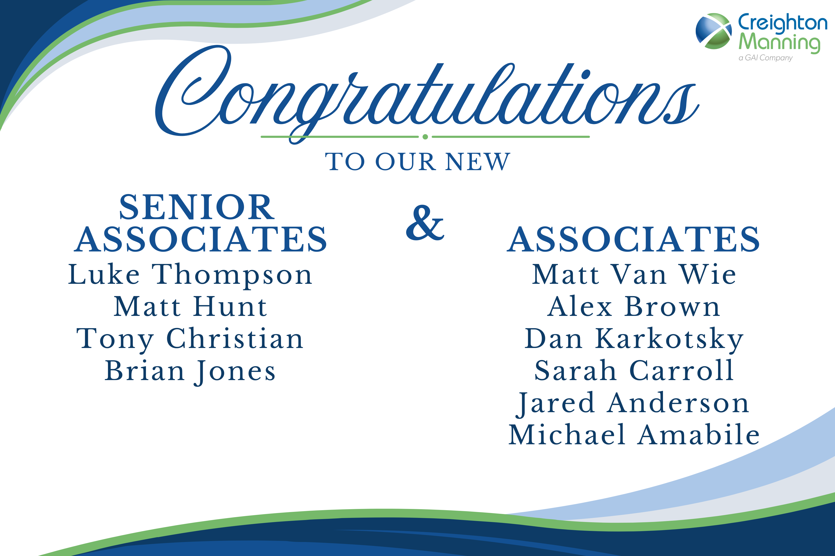 Creighton Manning Announces New Senior Associates and Associates